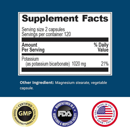 Potassium Supplement for Life Enhancement, 1020 mg, 240 Capsules, 120 Servings
