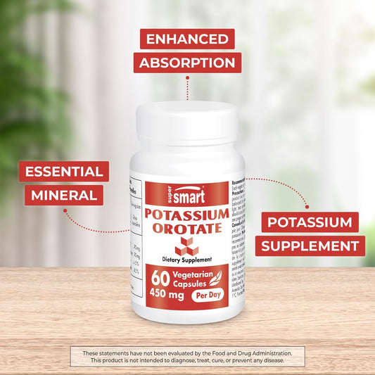 Potassium Orotate 450mg Daily Supplement for Acid-Base Balance, Nerve Transmission, and Heart Health - Non-GMO, Gluten Free - 60 Capsules