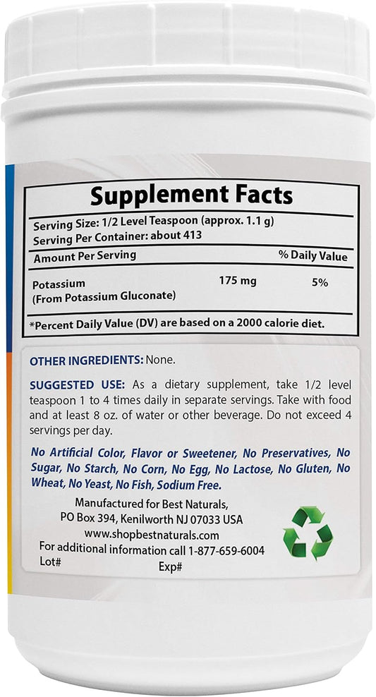 Top-Rated Potassium Gluconate Powder - Natural Supplement for Healthy Living - 1lb Pack