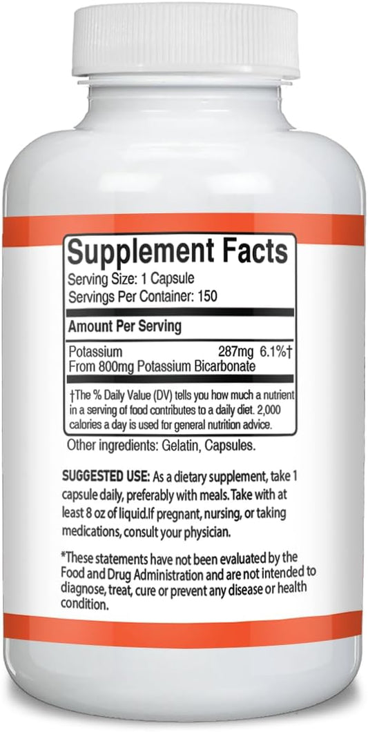 Pure Potassium Bicarbonate Capsules (150 Count) - Unadulterated Dietary Supplement, Verified in Lab, No Additives