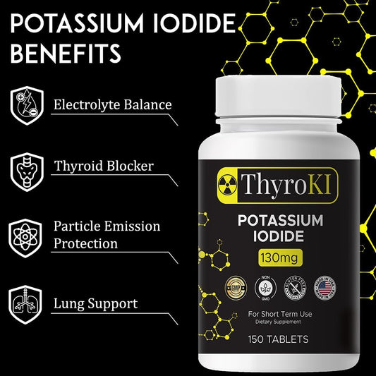 ThyroKI Potassium Iodide Tablets 130mg - 150 Tablets for Thyroid Support | Fast Dissolving KI Pills - Non-GMO Emergency Survival Supplement