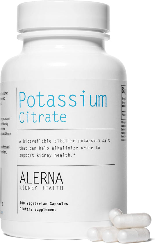 Alerna Kidney Health Potassium Citrate 99 mg - Electrolyte Balance & pH Support - Kidney Stone Supplement - 100 Capsules (3 Pack)