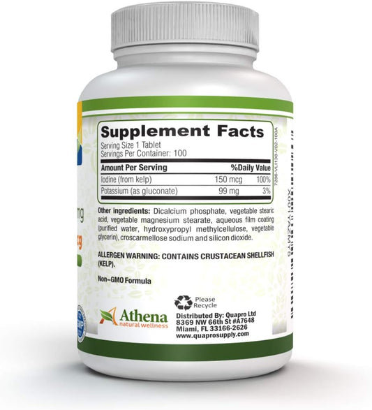 Athena Natural Wellness Potassium 99mg and Iodine 150mcg Supplement for Overall Health