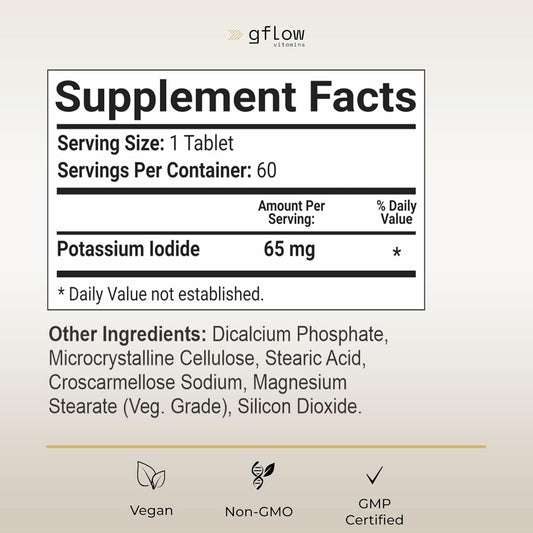 Potassium Iodide 65mg Dietary Supplement for Thyroid Support - 4 Months Supply - 2 Pack - Non-GMO - Made in USA - Exp 03/2029