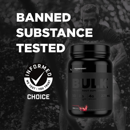 Bulk Black Pre Workout by Transparent Labs: Clinically Dosed Sugar Free Preworkout for Men and Women - 30 Servings, Black Cherry Flavor