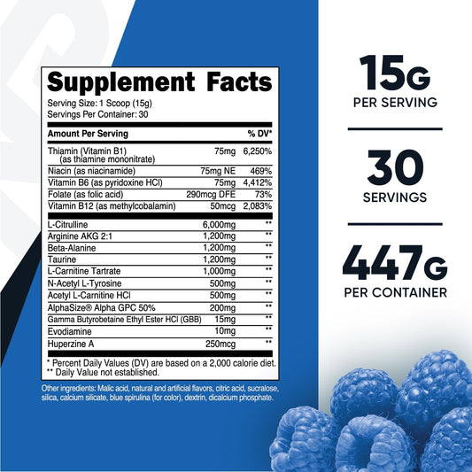 GAT SPORT Nitraflex Ultra Blue Raspberry Pre-Workout Supplement - 30 Servings