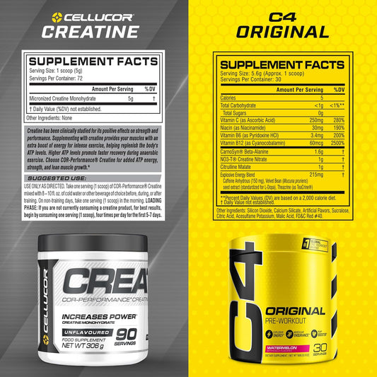 Cellucor C4 Original Pre Workout Powder & Cor Performance Creatine Bundle, Watermelon Flavor, 30 Servings + 72 Servings