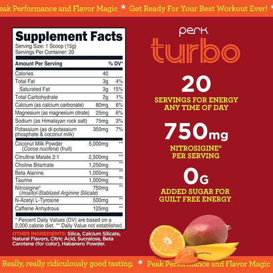 Mango Habanero Flavored Perk Turbo Pre-Workout Powder - 20 Servings, Gluten-Free