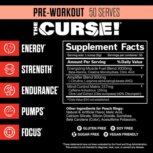 50 Servings of JNX SPORTS The Curse! Peach Rings Pre Workout Powder - Boost Strength, Energy, and Focus with Caffeine, Beta-Alanine, Creatine, and L-Citrulline for Men and Women