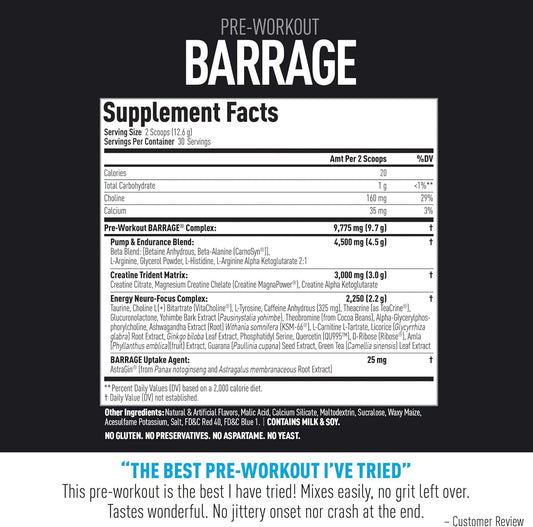 Barrage Pre Workout Powder - Ideal Preworkout for Women & Men, Creatine, Beta Alanine, Agmatine Sulfate, & Caffeine - Muscle Builder with Intense Energy - Grape Flavor (30 Servings)