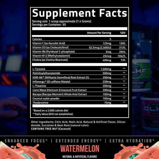 Gaspari Nutrition GLHF Gaming Energy Drink - Boosted Focus, Increased Energy, Hydration Support - Watermelon Flavor - 30 Servings