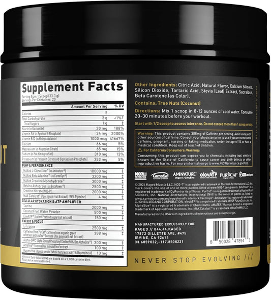 High Stimulant Pre-Workout Powder for Men & Women with L-Citrulline, Beta Alanine, Creatine & Organic Caffeine - Orange Mango Flavor