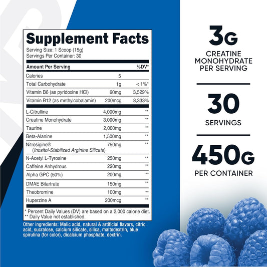 Nutricost Pre-Workout Complex with Creatine (Blue Raspberry Flavor | 30 Servings) - Enhance Fitness Performance, 450g Powder