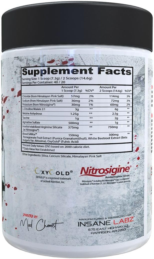 Insane Labz Saw Bloodbath Non-Stim Pump Pre Workout Powder - Nitrosigine, OxyGold, Agmatine Sulfate, L-Citrulline, Betainne Anhydrous - 40 Servings
