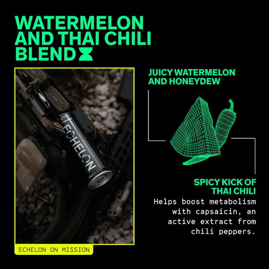 12-Pack Echelon Pre-Workout Energy Drink - Watermelon Chili Flavor - Vegan Supplement with 300mg Caffeine, Beta-Alanine, L-Theanine & Fiber for Peak Performance