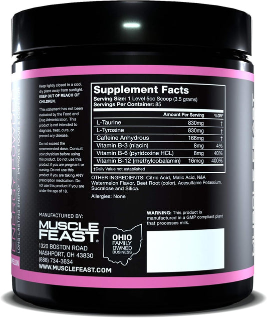 300g Muscle Feast Sugar-Free Watermelon Pre-Workout with 8 Hour Energy - Keto-Friendly & Zero Calorie