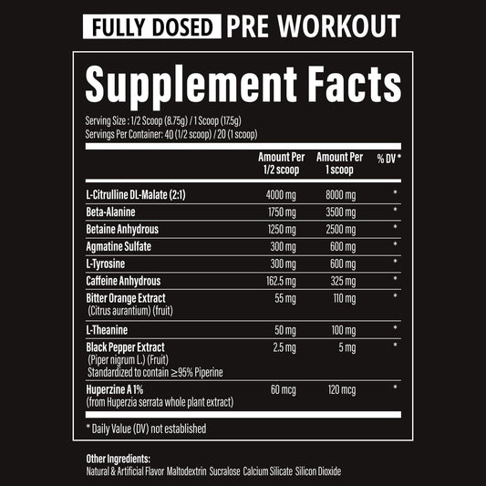 TC Nutrition Batch 27 Blue Slushie Pre Workout Powder with Citrulline, Beta Alanine, Betaine, Caffeine - Enhance Energy, Focus, Pumps, Strength - Nitric Oxide Booster & Preworkout Supplement