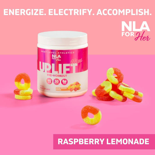 NLA for Her Uplift MAX Pre-Workout Energy (Sour Peach Rings) - 30 Servings - Clean Energy Boost for Women, Supports Athletic Performance, Fast Twitch Muscle Activation - Caffeine, Vegan, GF, Low Calorie