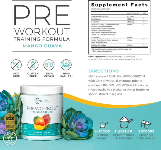 Sol Pre-Workout for Women - Enhanced Pump & Focus, Natural Ingredients, Vegan (Mango Guava)