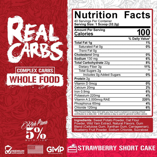 5% Nutrition Rich Piana Real Carbs Complex Carbohydrates Strawberry Shortcake - 2.84 lb, 40 Servings - Low Glycemic Energy for Pre/Post-Workout