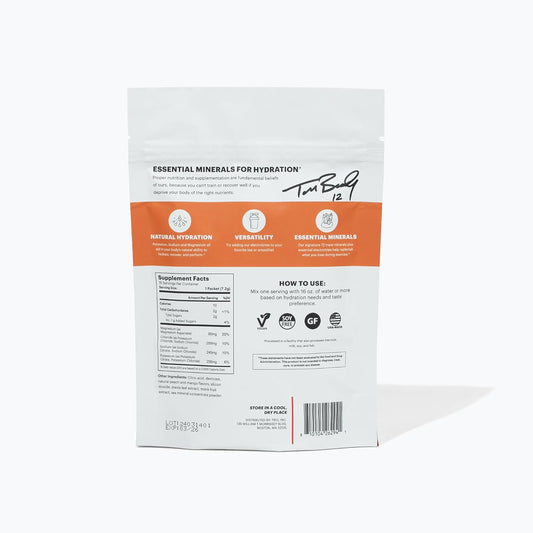 Tom Brady TB12 Peach Mango Electrolyte Supplement Powder - 15 Stickpacks, Vegan & Gluten-Free