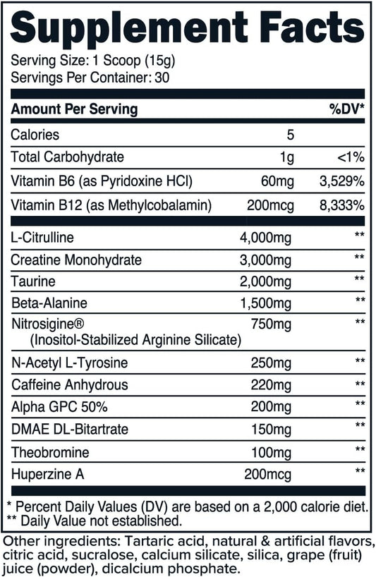 High Performance Pre-Workout Supplement for Focus, Endurance, Power, and Pump with L-Citrulline, L-Arginine, and Creatine - 45 Servings