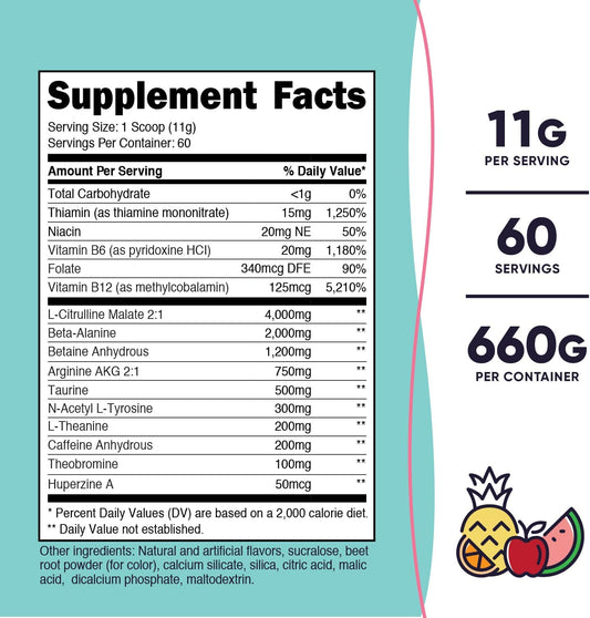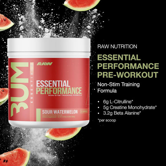 Non-Stimulant Pre-Workout Powder for Endurance, Strength, and Focus - Sour Watermelon Flavor with Creatine Monohydrate, L-Citrulline, and Beta Alanine