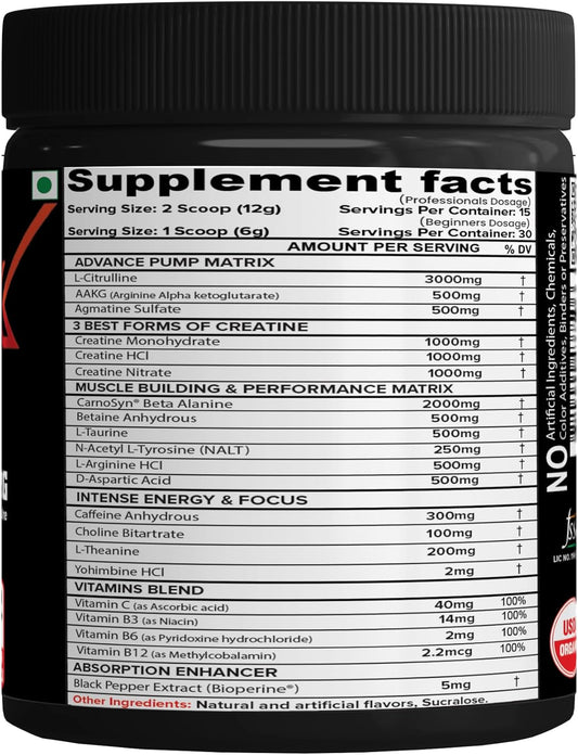 Advanced Pre Workout Powder with 10g L-Citrulline, 6.4g Beta Alanine, 5g Tyrosine - Boosts Energy, Focus, and Performance - 40 Servings