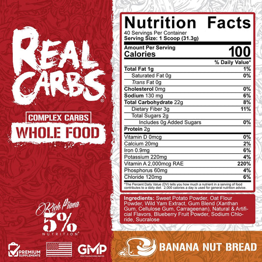 5% Nutrition Real Carbs: Complex Carbohydrates for Long-Lasting Energy - Banana Nut Bread, 2.7 Lb