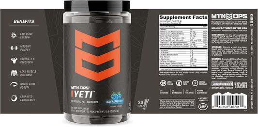 MTN OPS Yeti Trail Packs Blue Raspberry Pre-Workout Powder - 20 Servings