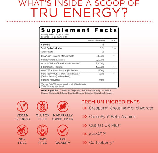 Vegan-Friendly Energy Pre-Workout Formula for Improved Performance - Strawberry Lemonade Flavor - 20 Servings