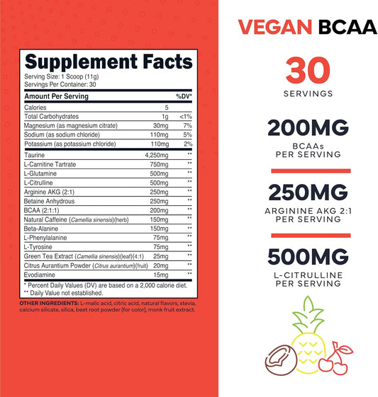 Sugar-Free Type Zero AminoBurn Tropical Punch BCAA Supplement - 30 Servings | Natural Pre/Post Workout Keto Drink