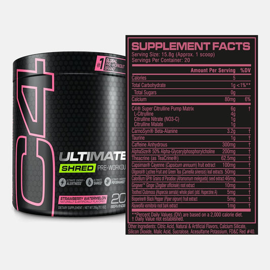 Cellucor C4 Ultimate Shred Pre Workout Powder - Weight Loss Supplement with Ginger Root Extract - Strawberry Watermelon Flavor - 20 Servings