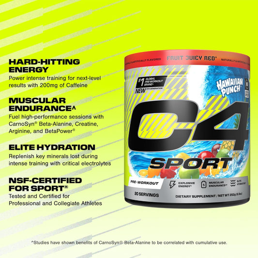 NSF Certified Cellucor C4 Sport Pre Workout Powder - Elite Hydration & Energy Supplement - 200mg Caffeine + Creatine - Hawaiian Punch Flavor