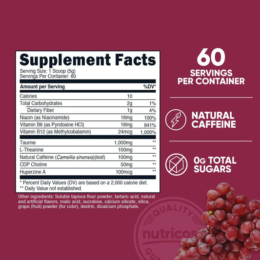 Nutricost Grape Energy Drink Powder - 60 Servings, Pre Workout Supplement with Natural Flavors - Non-GMO, Gluten-Free