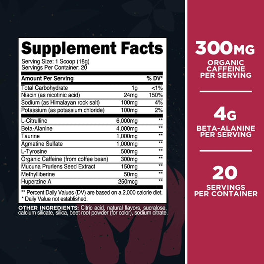 NSF Certified Zero Sugar Cherry Lime Pre Workout Powder with Electrolytes & Caffeine - 25 Servings