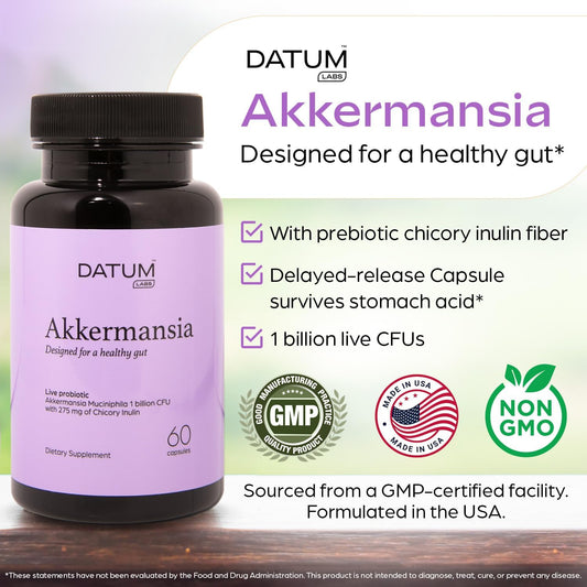 Akkermansia Muciniphila Probiotic + Prebiotic Supplement - Boosts GLP-1, Delayed Release, Third-Party Tested - 1Bn CFU (60 Capsules)Vendor:Datum LabsRegular price $120.74 AUDRegular priceUnit price / per-