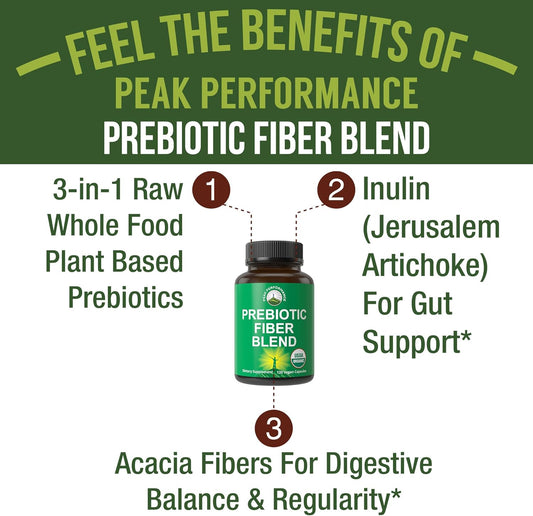 Organic Vegan Prebiotic Fiber Capsules for Gut and Digestive Health - USDA Certified, Raw Whole Food Supplement with Inulin, Acacia Fibers, SunFiber - Plant Based 3-in-1 FormulaVendor:Peak PerformanceRegular price $118.60 AUDRegular priceUnit price / per-