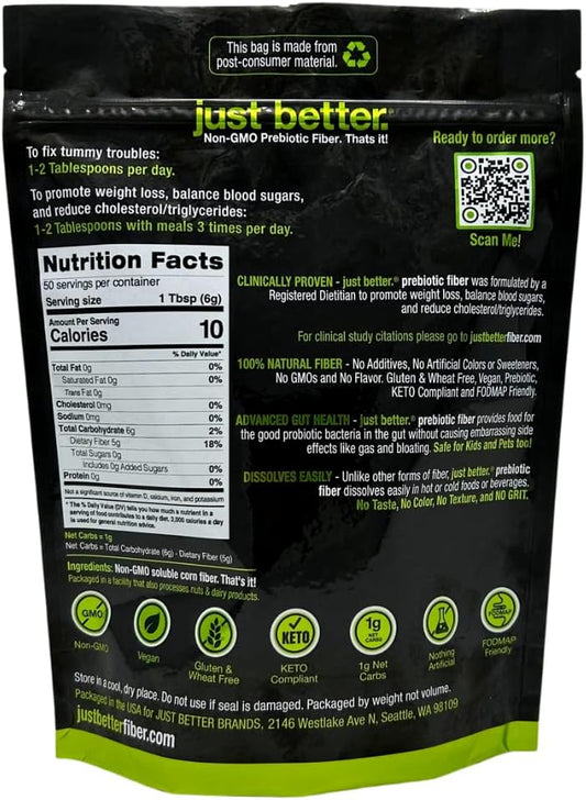 Prebiotic Fiber Supplement for Healthy Gut: Zero Grit, Zero Taste, No Bloating - Keto, Non-GMO, Gluten Free Vegan - 50 Servings
