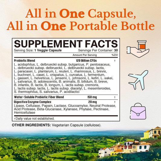 Vitalitown Probiotics: 120 Billion CFUs, 36 Strains, Prebiotics, Digestive Enzymes - On The Go Support
