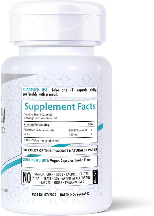 300 Billion AFU Healthfare Akkermansia Muciniphila Veg Capsules with Prebiotic Inulin - Gluten-Free & Non-GMO