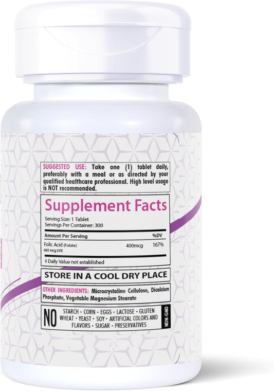 300 Tablets of Healthfare Folic Acid 400mcg Supplement with Folate Vitamin B9 - Gluten-Free & Non-GMO