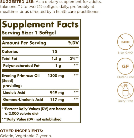 2 Packs Solgar Evening Primrose Oil Softgels - 1300mg, Cold-Pressed GLA Source - 120 Servings, Non-GMO, Gluten-Free