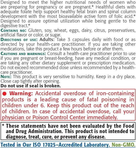 Allergen-Free Prenatal Vitamins for Women - MTHFR Friendly, Methylated Folate, Supports Fetal Development, Vegan, Easy-to-Digest