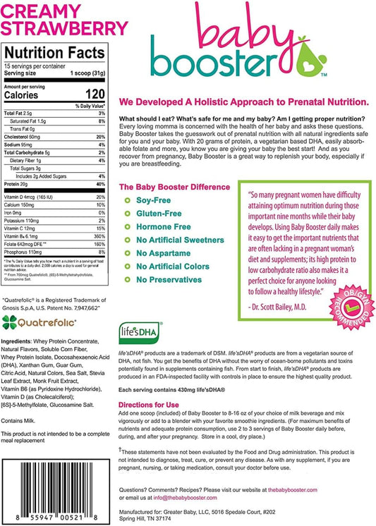 Prenatal Protein Powder Shake with Vegan DHA for Morning Sickness Relief - OB/GYN Approved Pregnancy Supplement - Creamy Strawberry Flavor, 1 lb