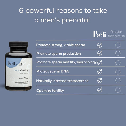 Prenatal Multivitamin for Men: Fertility Support, Enhanced Sperm Health & Testosterone - 60 Capsules with Vitamin E, B6, B12, Zinc, Folate, CoQ10 - 30-Day Supply