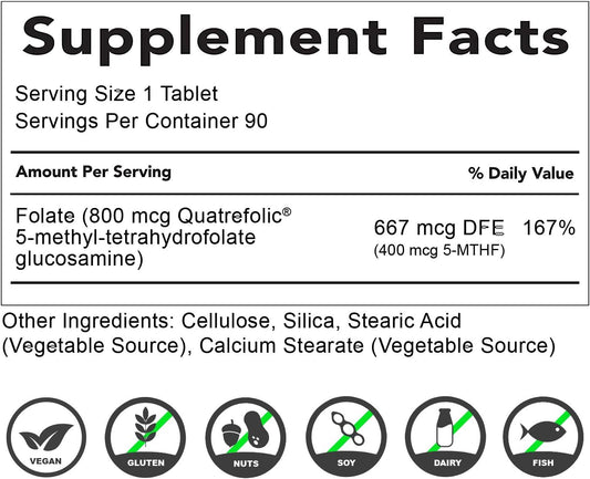 Organic Active Folate Quatrefolic Acid 5-MTHF Methylfolate for Prenatal Health & Development