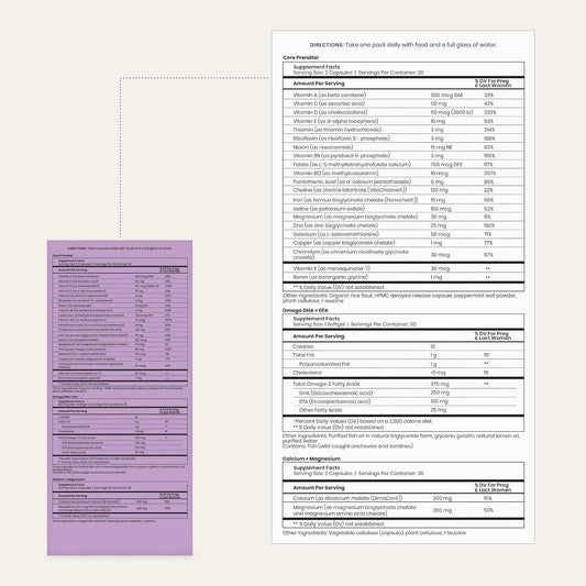 Pregnancy Vitamin Pack for 2nd Trimester - Omega DHA, Calcium, Magnesium Supplements - Soy-Free Non-GMO (30 Pills)