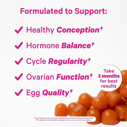 Premium Fertility Gummies for Women with Inositol, CoQ10, Folate - Hormone Balance, Ovulation, Menstrual Cycle - 1 Month Supply