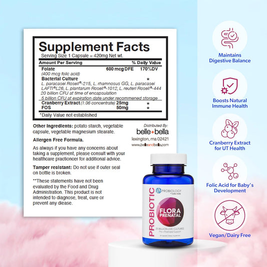 Prenatal Probiotic Capsules with Folic Acid for Women - Vegan & Gluten Free Supplement - 30 Capsules